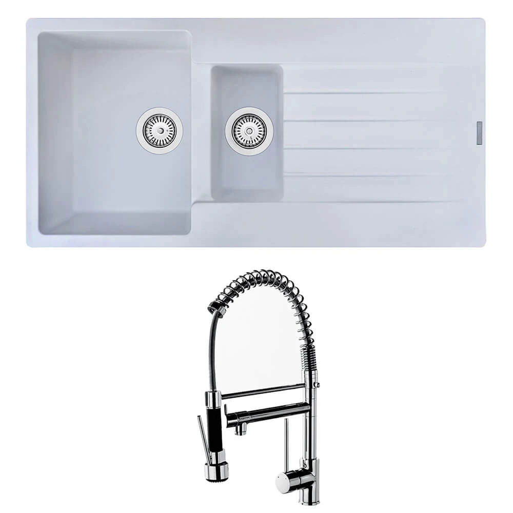 Reginox Harlem 1.5 Bowl White Granite Composite Sink & Waste Kit