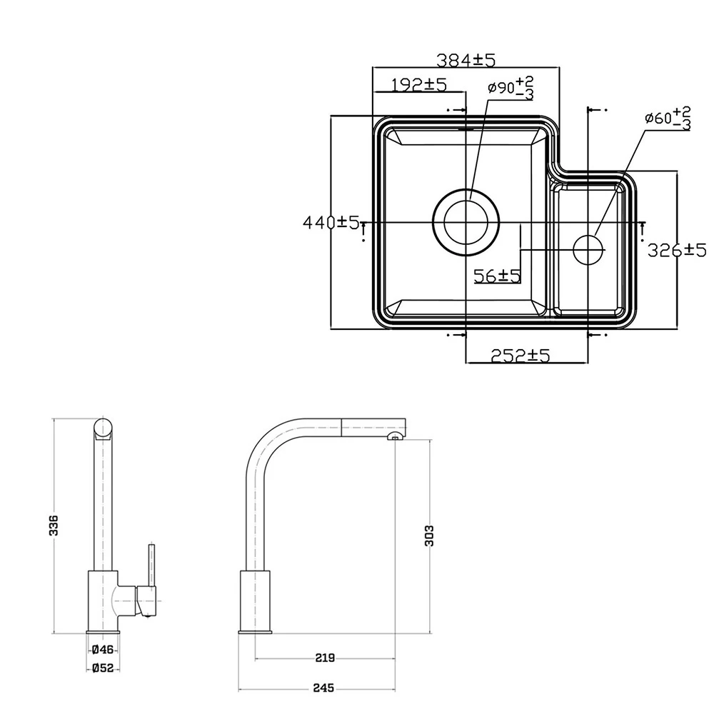 - Spout exit height – 303mm