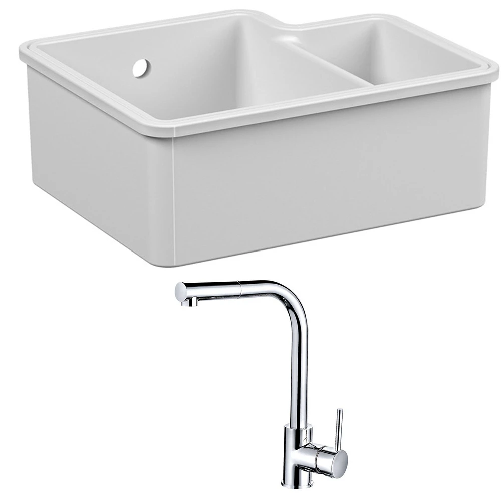 Start your kitchen upgrade with ease from the comfort of your own home with one of our fantastic kitchen sink and tap packages. All of our sink and tap packs are hand-picked to give you the best value for money and best looks in your kitchen. Included with this pack is an ultra-modern undermount ceramic sink and a stylish and very practical mono pull out kitchen mixer.