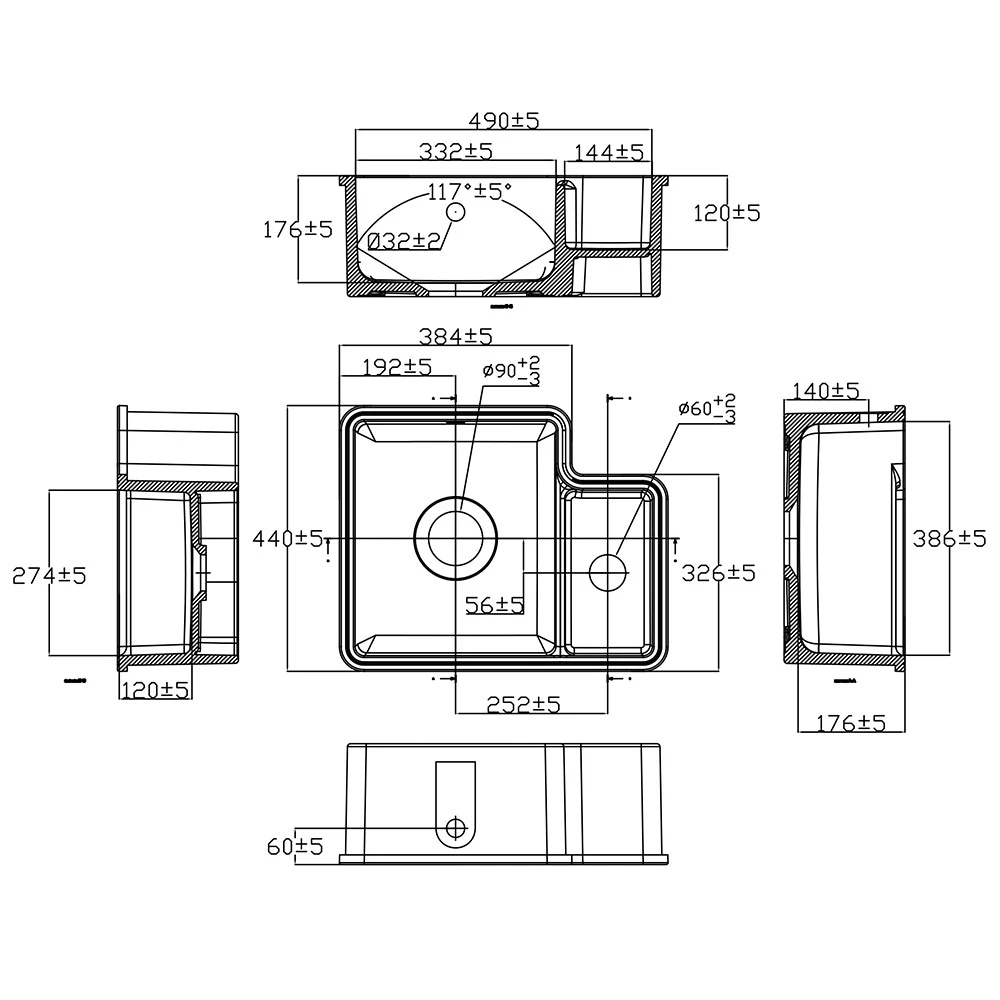 Please note: All fire-clay ceramic sinks may have a +/- 5% tolerance on the measurements due to the manufacturing process.