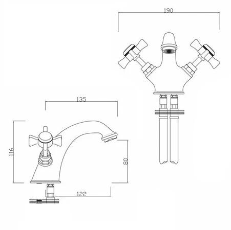 - Twin crosshead handles for separated control over hot & cold water supply