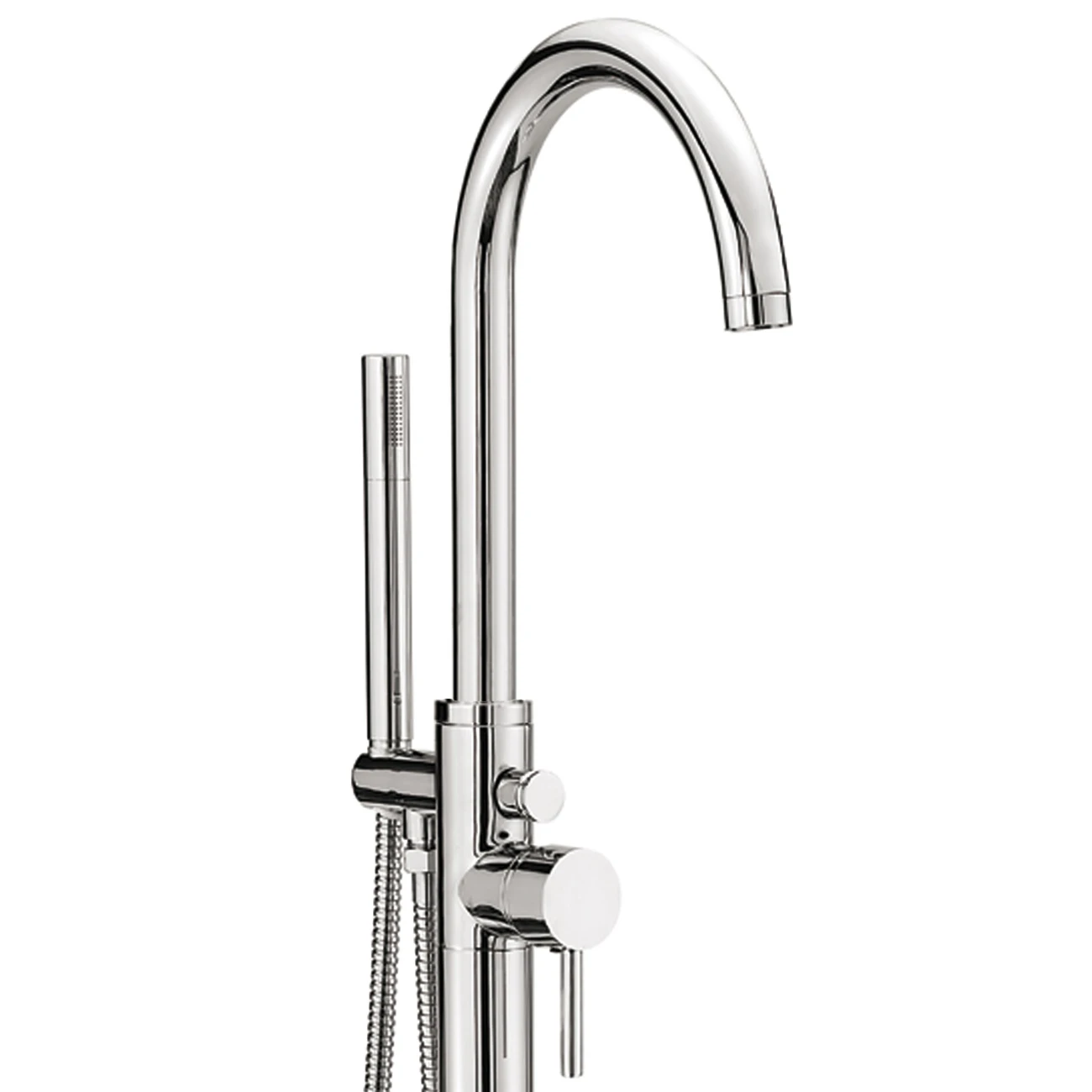 The Sagittarius Ergo floor mounted bath shower mixer and No.1 Kit is designed to look striking in a modern bathroom. It’s mounted from the floor and features a large, curved and cylindrical tap with an extra handset. It also features a combined tap valve and a chrome finish, plus a comprehensive 10 year guarantee from Sagittarius.