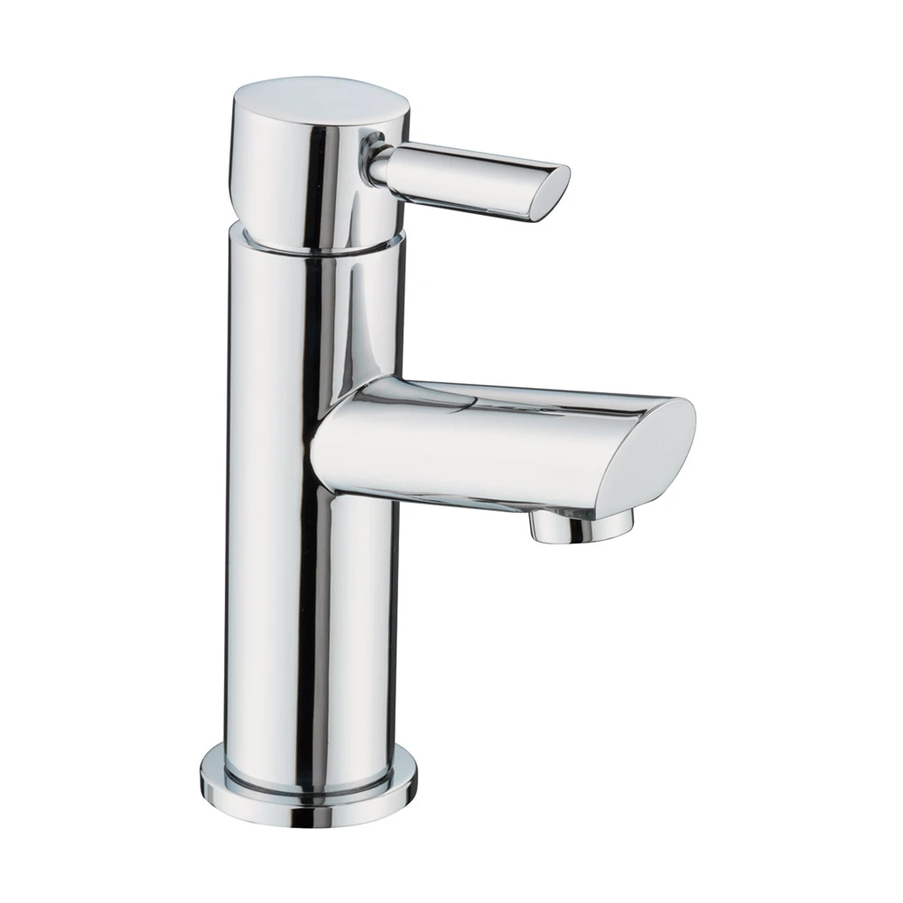 This Sagittarius Rocco cloakroom basin mixer without waste provides everything you need on your bathroom sink in one compact unit. The pillar design looks minimalistic and modern, and is complimented by the sparkling chrome finish. The chrome is easy to clean and resistant to soap scum and grime.