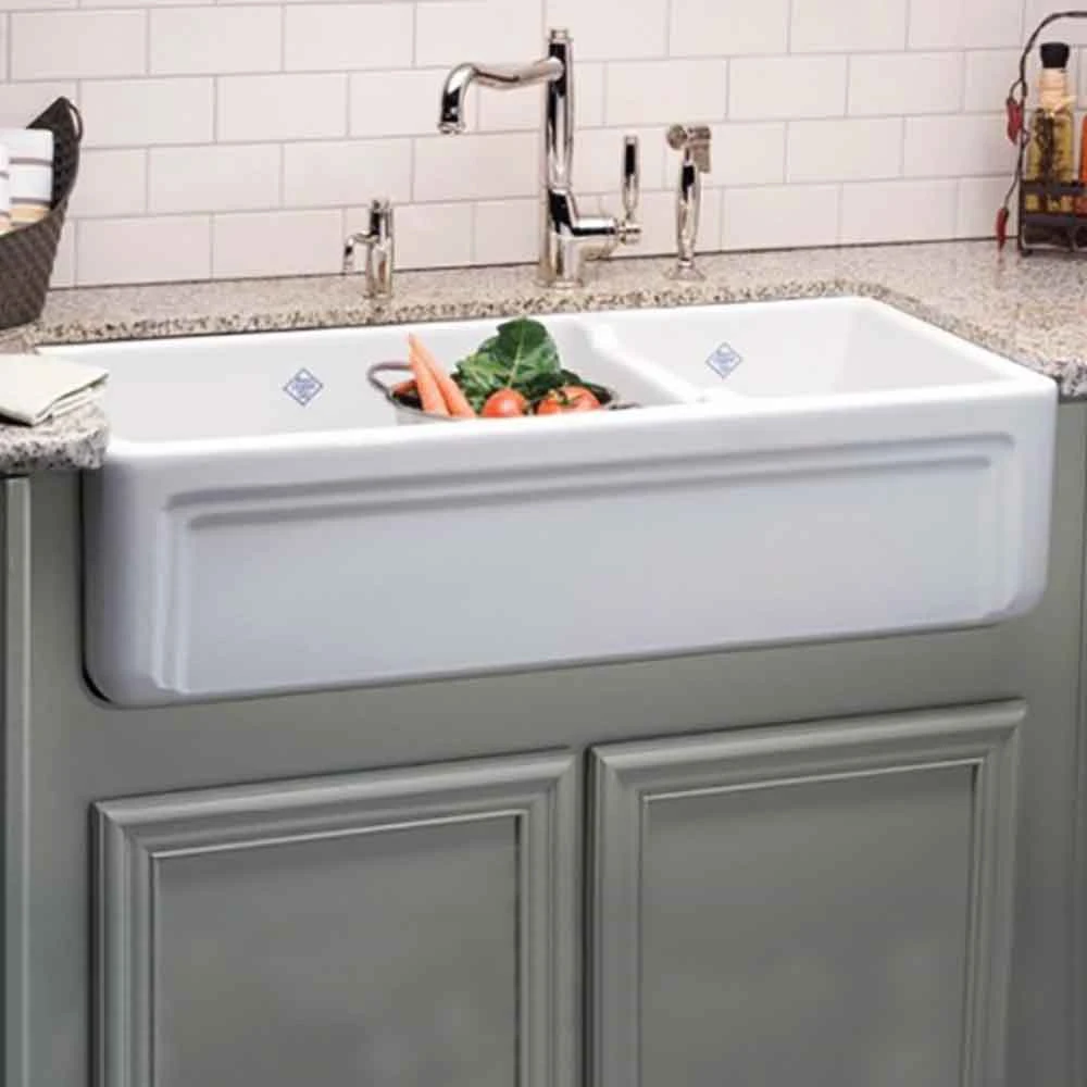 Big and beautiful, thats how we like our sinks, and this one does not disappoint on either front. Made from ceramic, this 2 bowl sink provides lots of versatility when it comes to those washing up demands. With one bowl larger than the other, the sink is big enough to allow 2 of you to wash up at the same time which is great for those busy couples who struggle to find time to spend together. The patterned front gives a touch of style to the sink that will sit well in almost any kitchen.