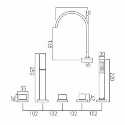 Vado Elements Water 5 Hole Bath Shower Mixer With Shower Kit