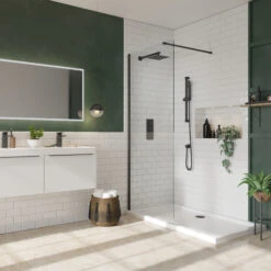 Harbour I8 Matt Black Framed Easy Clean 8mm Walk In Shower Panel & Flipper Panel – 900mm