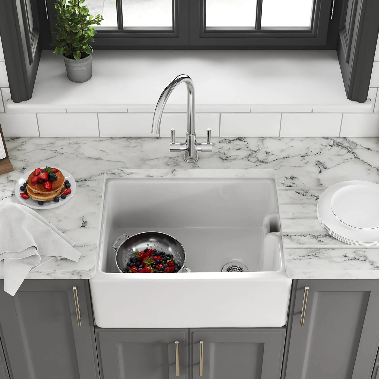 - Traditionally designed gloss white ceramic Belfast sink with soft sculpture profiles for a timeless appeal