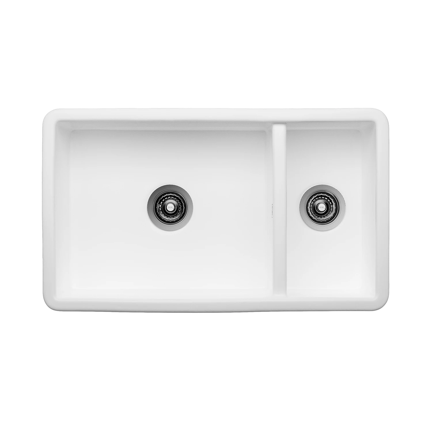 Please note: This fireclay ceramic sink may have a tolerance of +/-2% on the specified measurements. This is due to the manufacturing process. As fireclay ceramic is a natural material, once it has been fired in the kiln it can expand or contract ever so slightly causing slight fluctuations to the measurements stated above and in the spec box. For this reason, we strongly recommend that you wait until you have received your sink and can measure it for templating purposes before making any cuts in your worktop. If you would like more information, please feel free to contact our sales team here via live chat or email