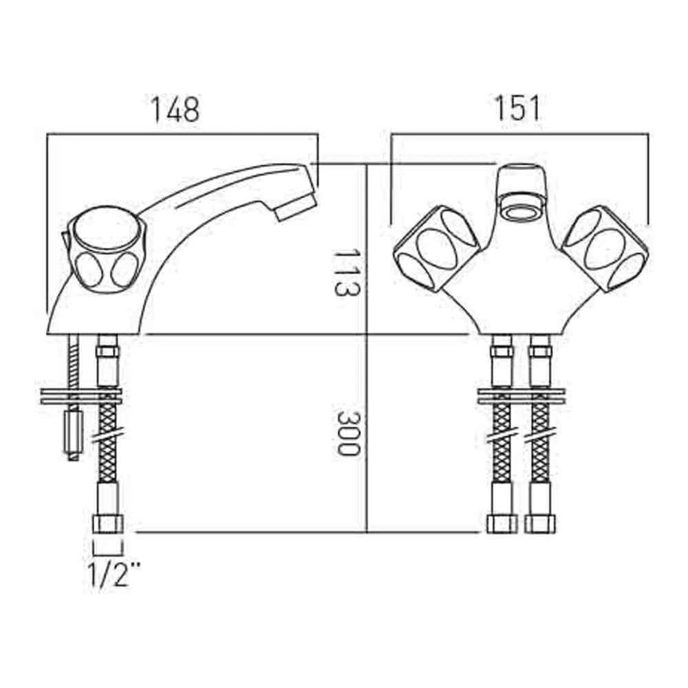 This Mono Basin Mixer With Pop-up Waste is a compact, stylish and practical addition to Vado’s Astra range, beautifully made to complement a smaller bathroom or to offer more deck room if paired with a standard basin. The sturdy handles are easy to use and both feature a delicate and thin circle in blue and red, to indicate the water temperature. With this basin mixer you will have an elegant fixture in your bathroom and you will also reduce your water usage, thanks to the integrated water flow regulator.