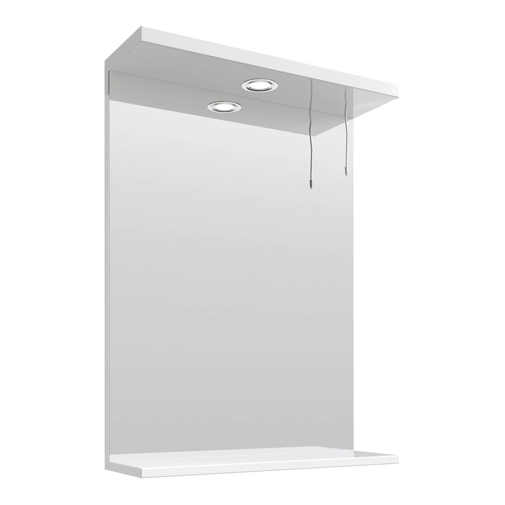 The Vellamo Alpine mirror range from Bathrooms consists of a selection of incredibly stylish contemporary mirrors finished in stunning white. With a shelf at the bottom of the unit it allows your most important toiletries to be organised and tidy but always accessible. The unit comes with integrated lighting above the mirror, operated with a pull cord.