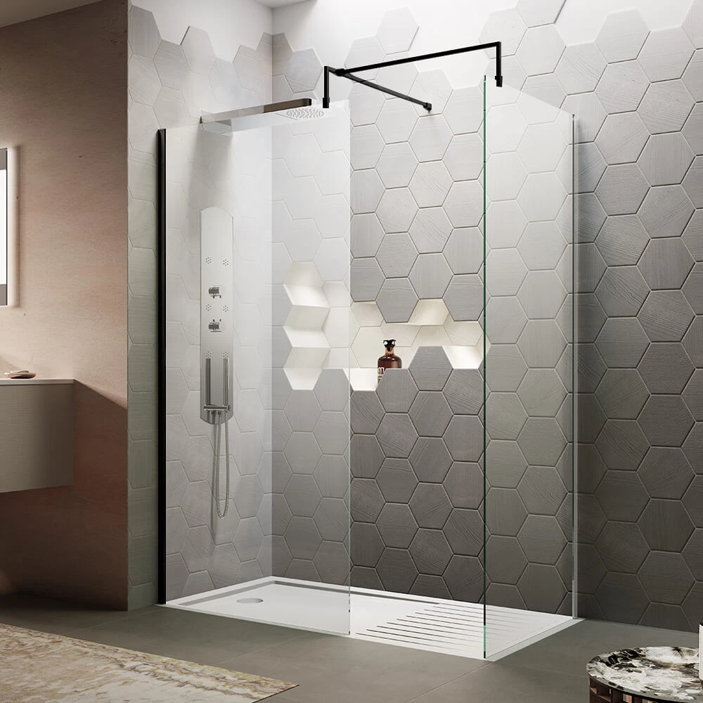 - Single-sided ‘Shower Shield’ coated glass helps keep glass clean and reduces water residue