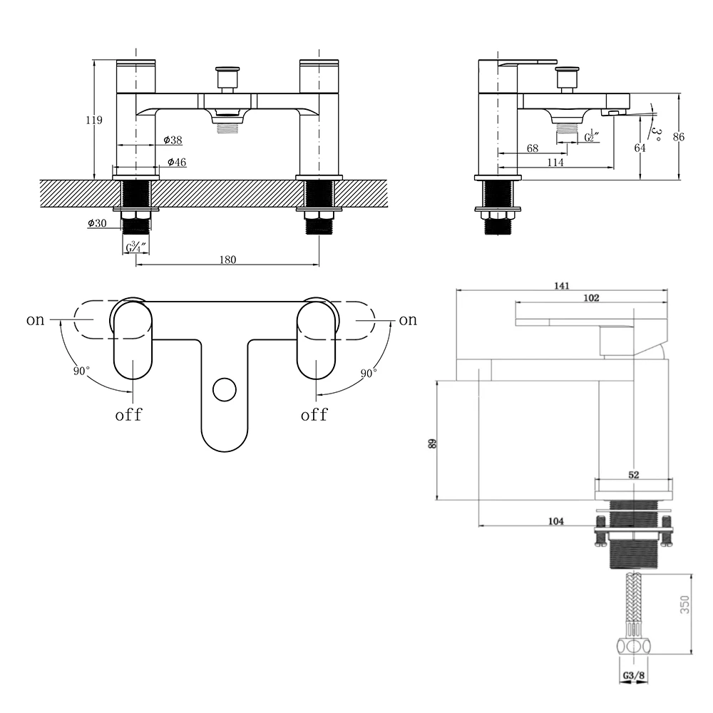- Basin mixer tap minimum required water pressure: 0.5 bar