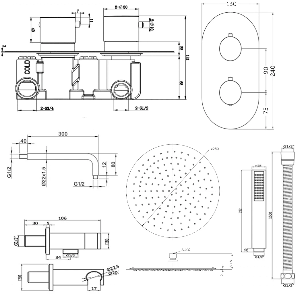 - 2 outlet concealed thermostatic shower valve
