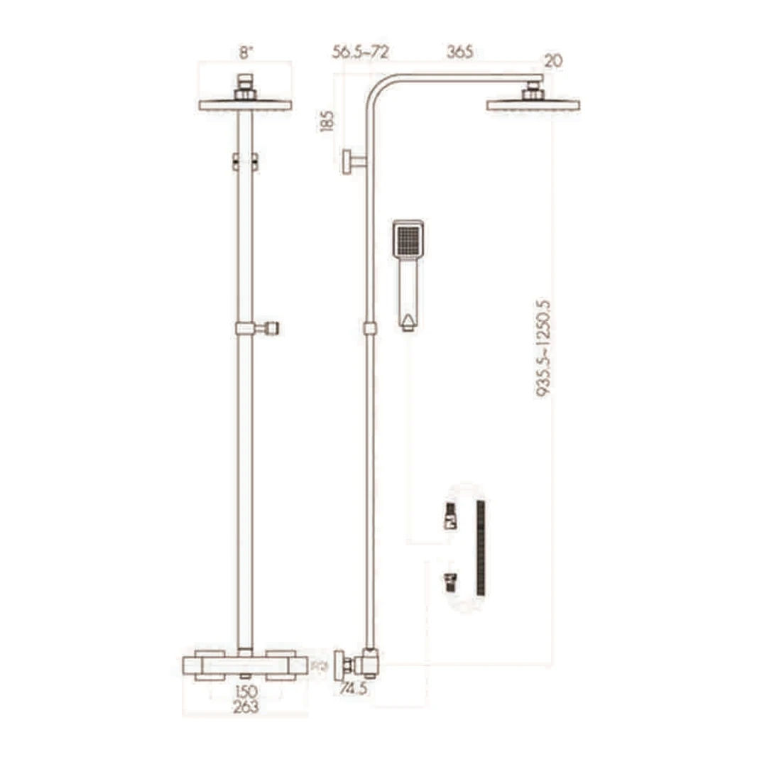 - Adjustable handset holder means secondary shower handset can be moved up and down to suit