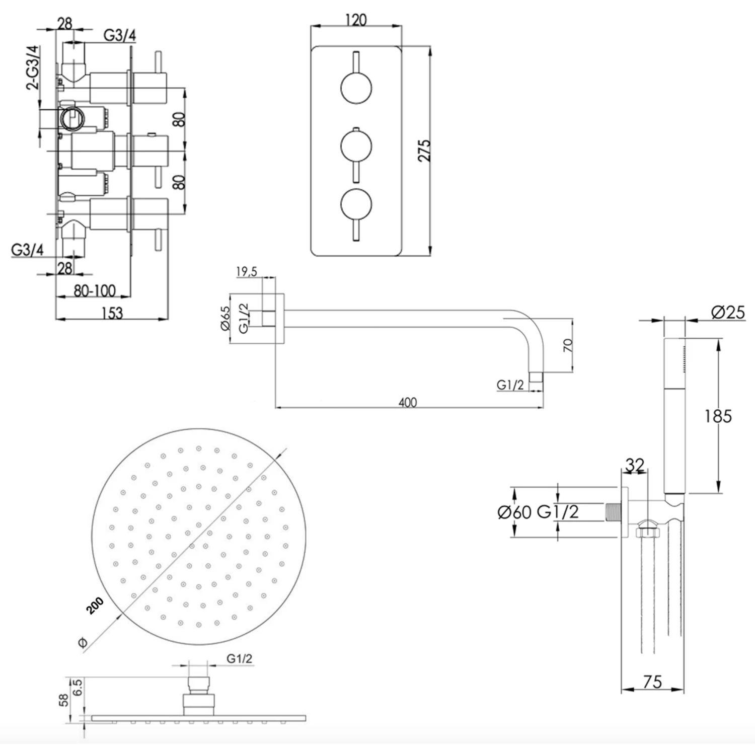 VOS 2 Outlet Concealed Thermostatic Shower Valve – Matt Black